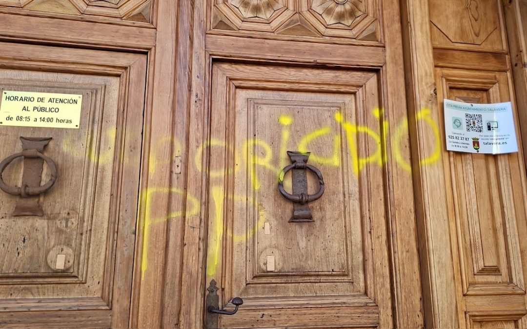 El alcalde, José Julián Gregorio, ha condenado las pintadas contra el Partido Popular aparecidas esta mañana en la puerta de oficinas del Ayuntamiento, algo que será denunciado desde el equipo de Gobierno ante la Policía Nacional al tratarse de un acto vandálico contra el patrimonio talaverano.